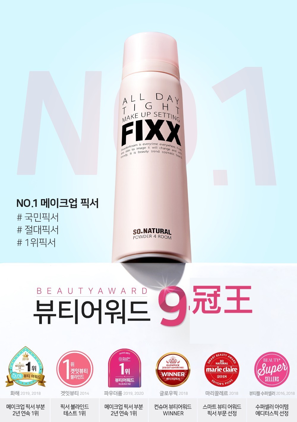 2020年喺韓國三大美容排行榜Hwahae、Powder Room同Glowpick定妝噴霧部門分別排第1、1、2位,係長年榜首!真係出晒名係定妝噴霧首選!