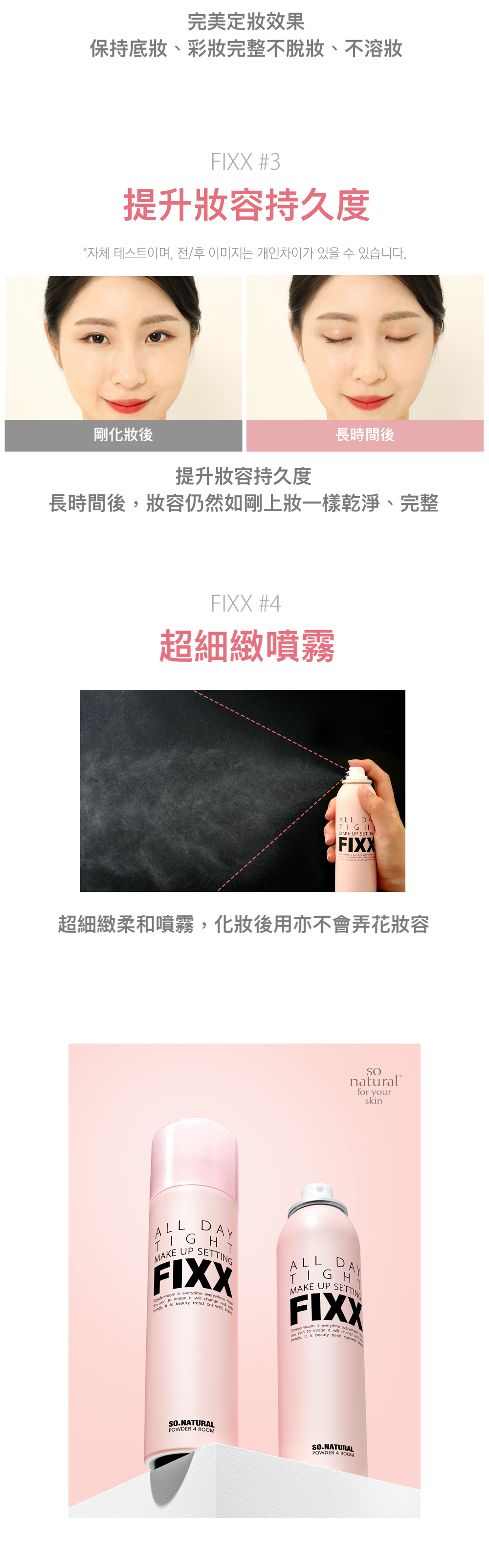 平時上完粉底、碎粉之後,噴埋定妝噴霧,成個妝真係好持久好多!溶妝同卡粉情況都大大減少,定妝效果好之餘,亦唔會抽乾皮膚水份!