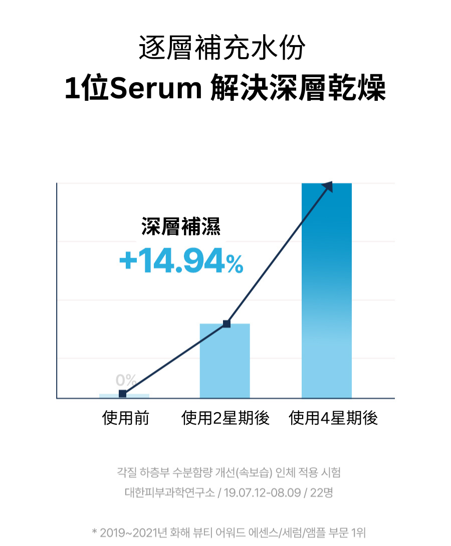 混合不同分子大小的透明質酸,同時為皮膚表面與真皮層全方位保濕